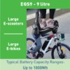 9L – Designed for large e-scooters and e-bikes (up to 1000Wh)